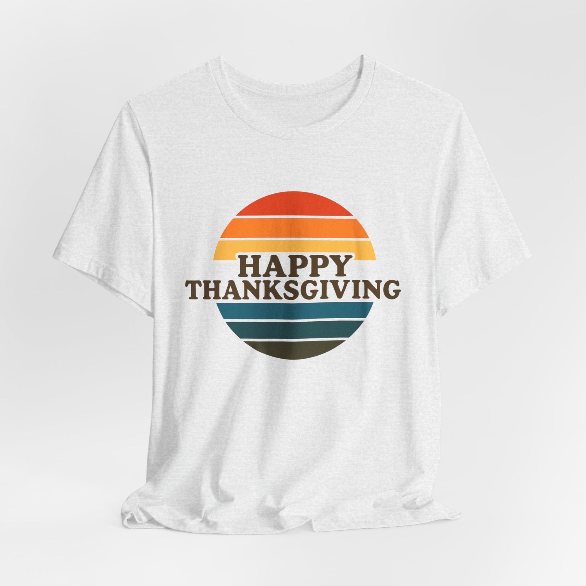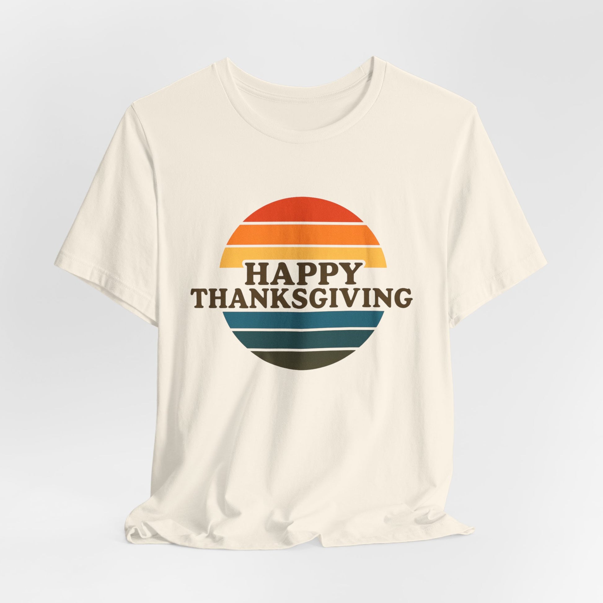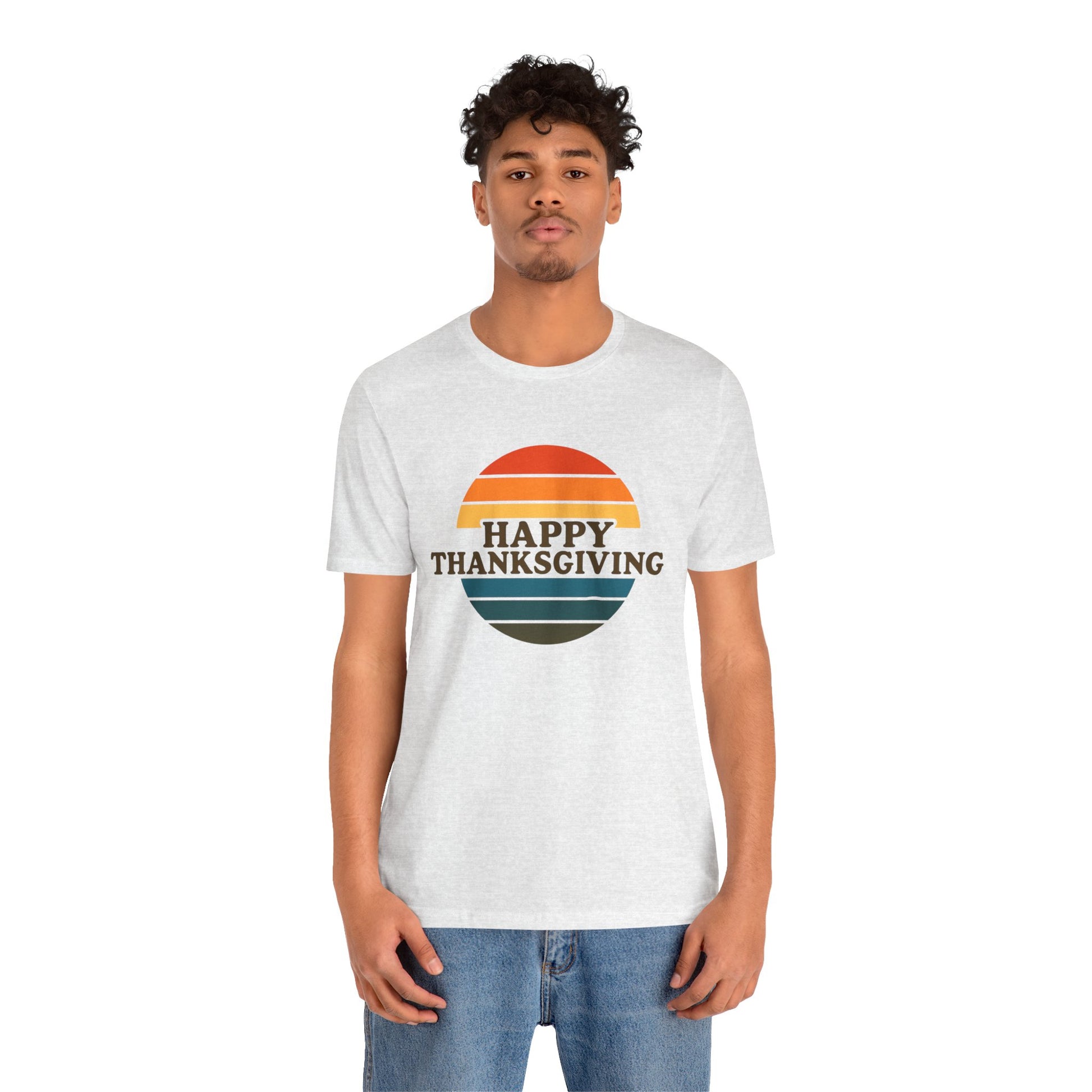 Happy Thanksgiving Retro Shirt - Vintage 70s Striped Aviator Style Tee Gift