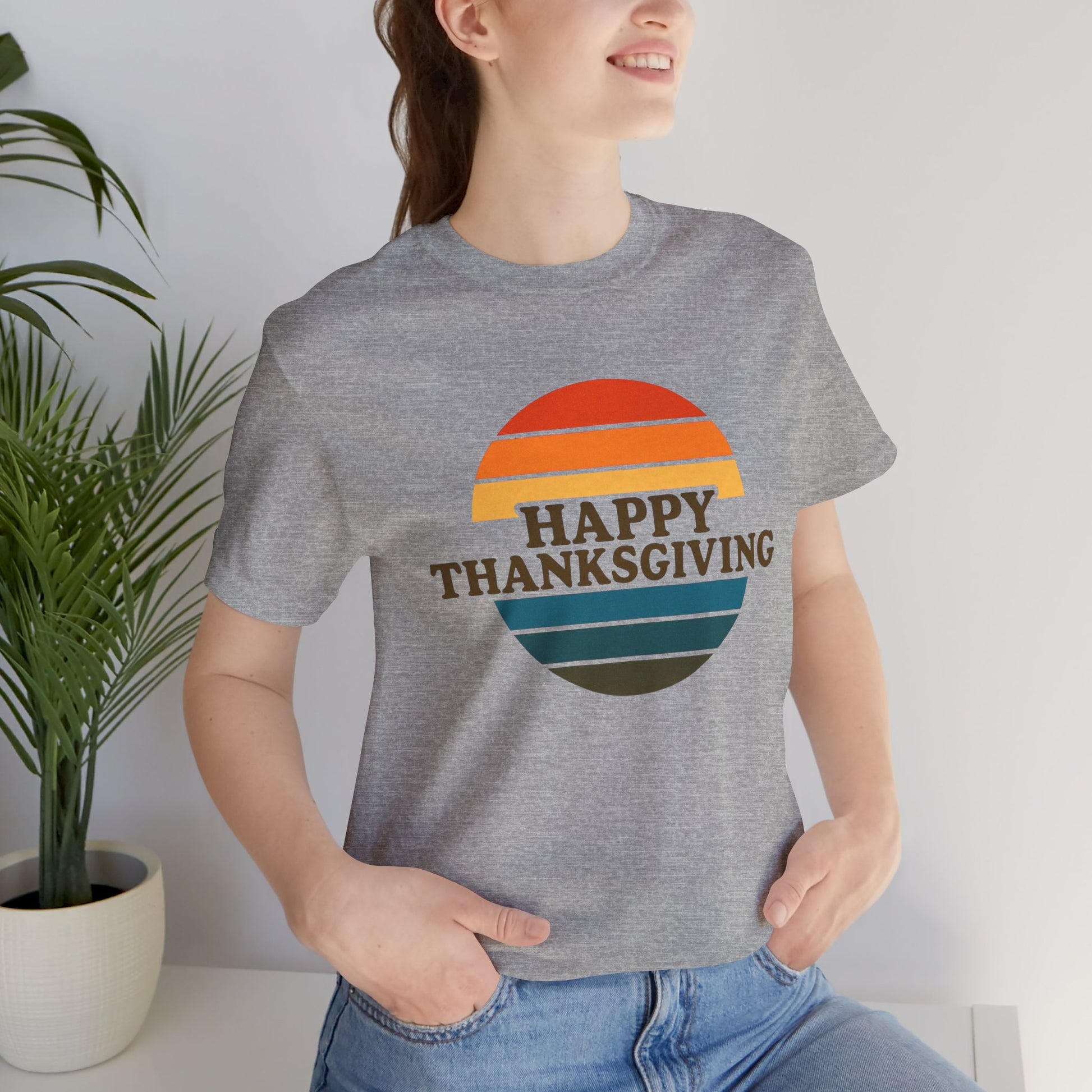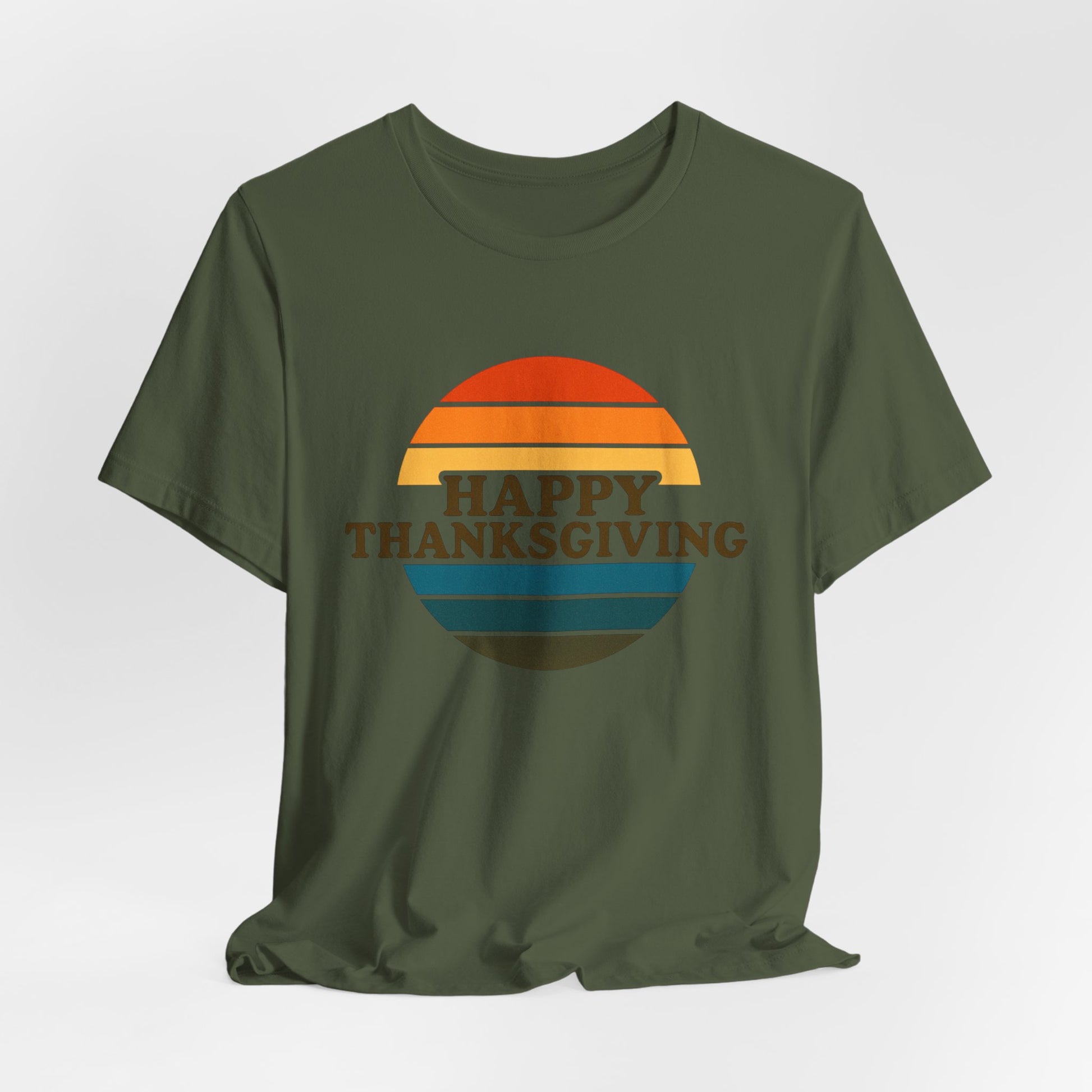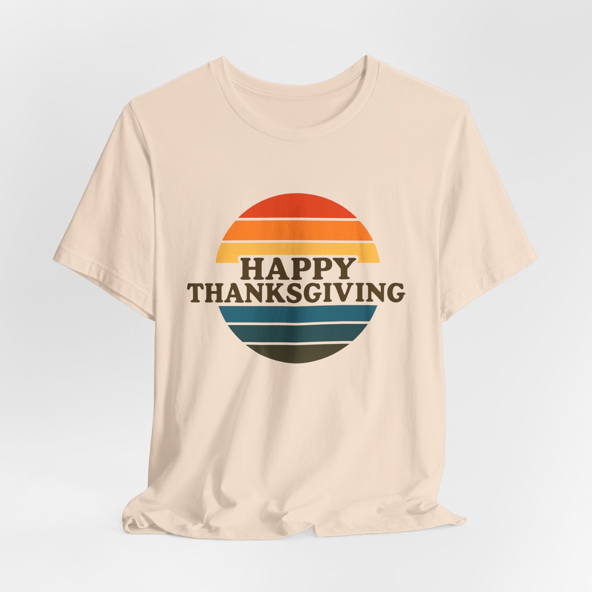 Happy Thanksgiving Retro Shirt - Vintage 70s Striped Aviator Style Tee Gift