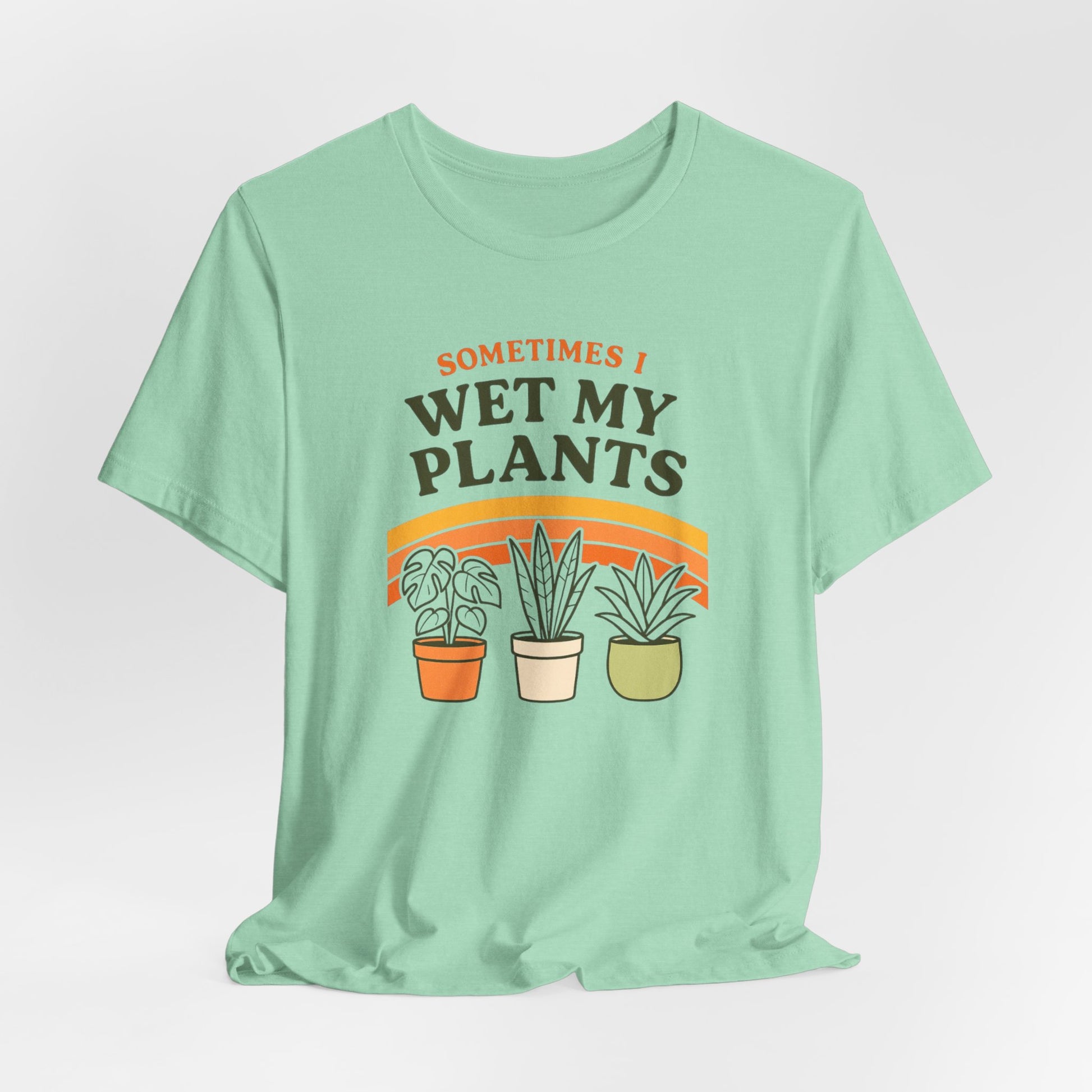The "Sometimes I Wet My Plants" Tee features three adorable potted plants in a retro-inspired design that's equal parts cheeky and charming — because plant parents have the best sense of humor.