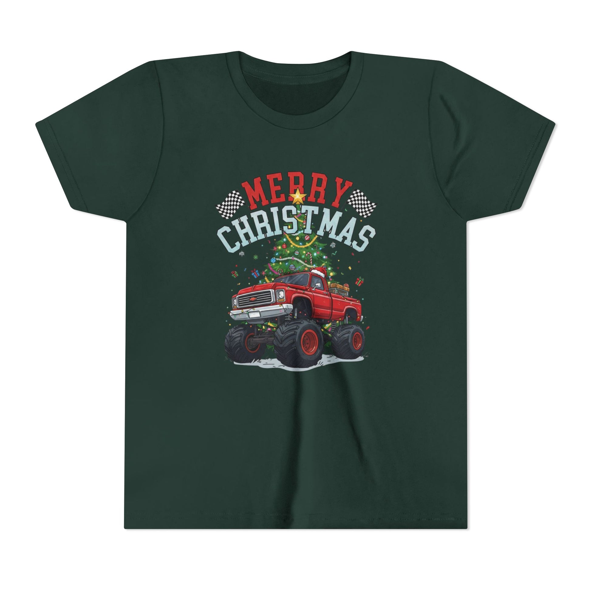 🎄 Monster Truck Christmas Youth T-Shirt - Let the Little Ones Rev Into the Holidays! 🚚✨